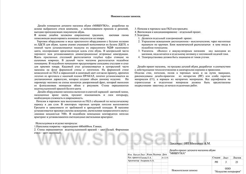 Дизайн проект магазина, по продаже детской обуви, разработан в соответствии с действующими технологическими и санитарными нормами и правилами.
