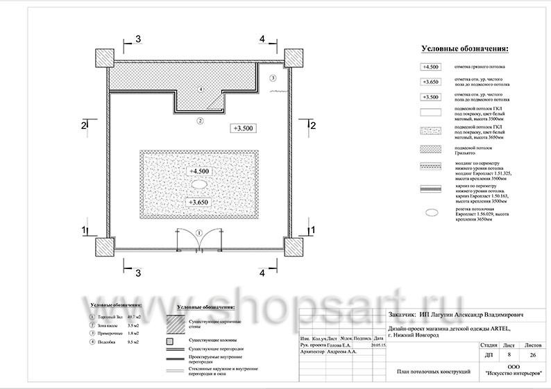 3. Потолок в торговом зале выполнен из гипсокартона.