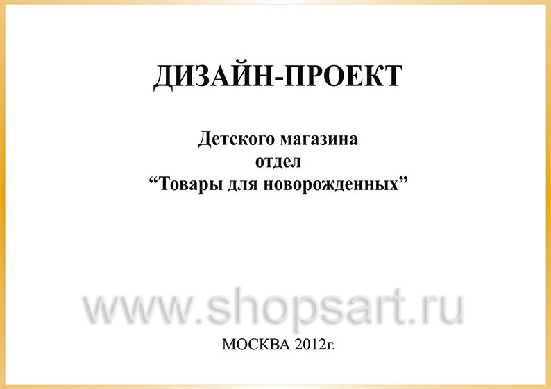 Дизайн помещения отдела магазина «Товары для новорожденных», разработан на основе выбранного стиля компании, с использованием приемов и решений, выгодно преподносящих покупателю детскую одежду.