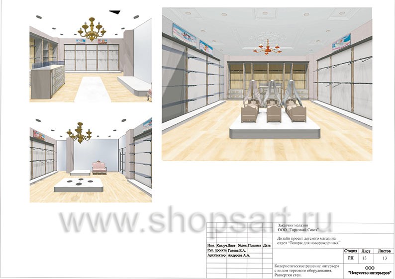 На этой странице Вы можете ознакомиться с дизайн-проектом для детского магазина «Товары для новорожденных», находящегося в ТЦ “Кашалот”, город Якутск, на основе коллекции торгового оборудования «ЭЛИТ ГОЛД». Разработала дизайн-проект магазина, дизайн интерьера и дизайн торговой мебели компания «Искусство интерьеров». Узнать больше о наших коллекциях оборудования для детских магазинов Вы можете на странице детской торговой мебели.