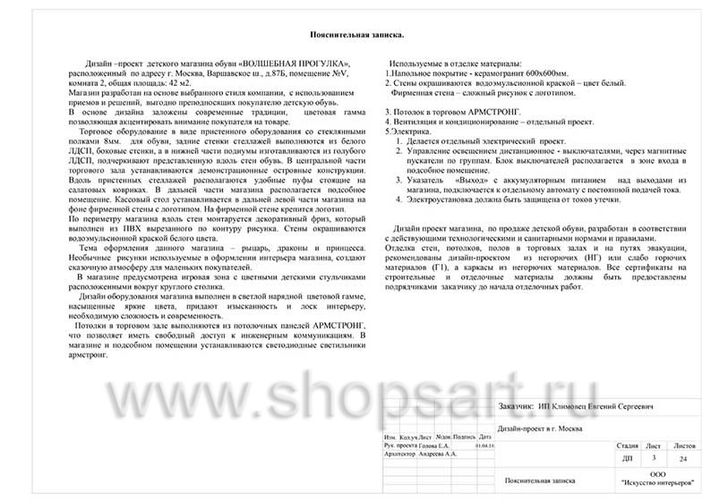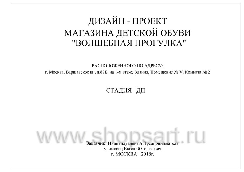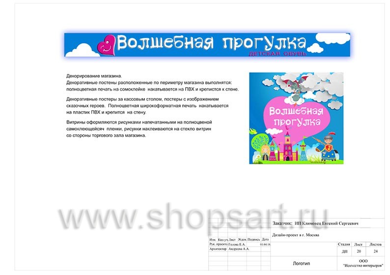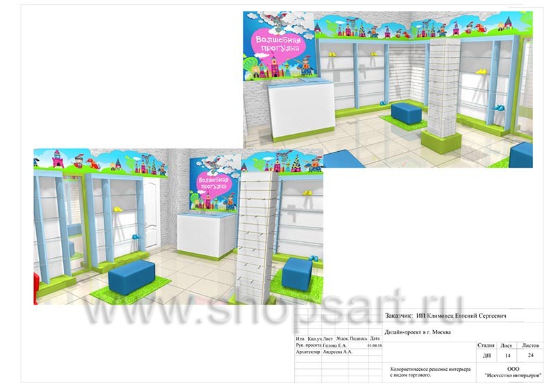 Дизайн–проект детского магазина обуви «ВОЛШЕБНАЯ ПРОГУЛКА», расположенного по адресу: г. Москва, Варшавское ш., д.87Б, ТДЦ “Варшавский”.
