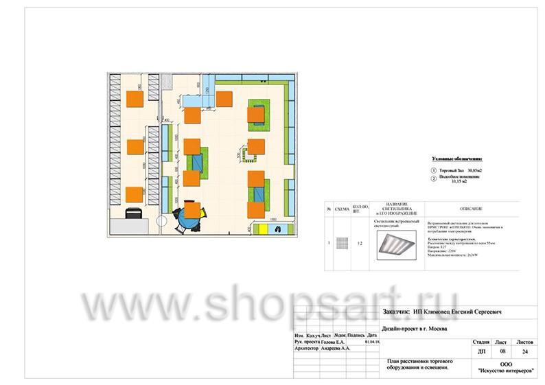 18. Колористическое решение интерьера с видом торгового оборудования. Лист 5.