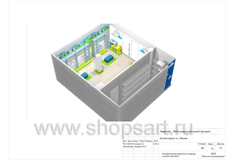 19. Колористическое решение интерьера с видом торгового оборудования. Лист 6.