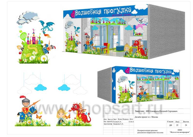 На этой странице Вы можете ознакомиться с дизайн-проектом детского магазина «ВОЛШЕБНАЯ ПРОГУЛКА», находящегося в городе Москве, Варшавское шоссе, дом 87Б, ТДЦ “Варшавский”, помещение № V, комната 2, на основе коллекции торгового оборудования «АКВАРЕЛИ». Разработала дизайн-проект магазина, дизайн интерьера и дизайн торговой мебели компания «Искусство интерьеров». Узнать больше о наших коллекциях оборудования для детских магазинов вы можете на странице мебели для магазина детских товаров .