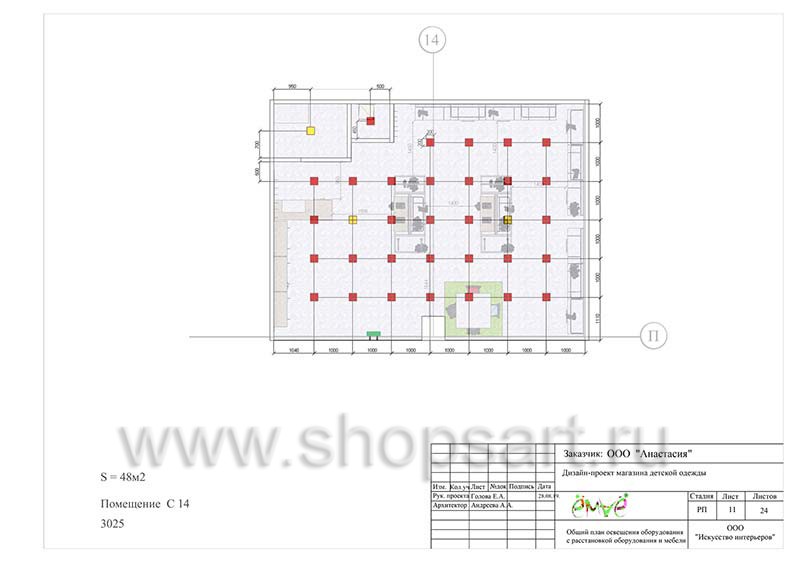 11. Общий план освещения оборудования с расстановкой оборудования и мебели.