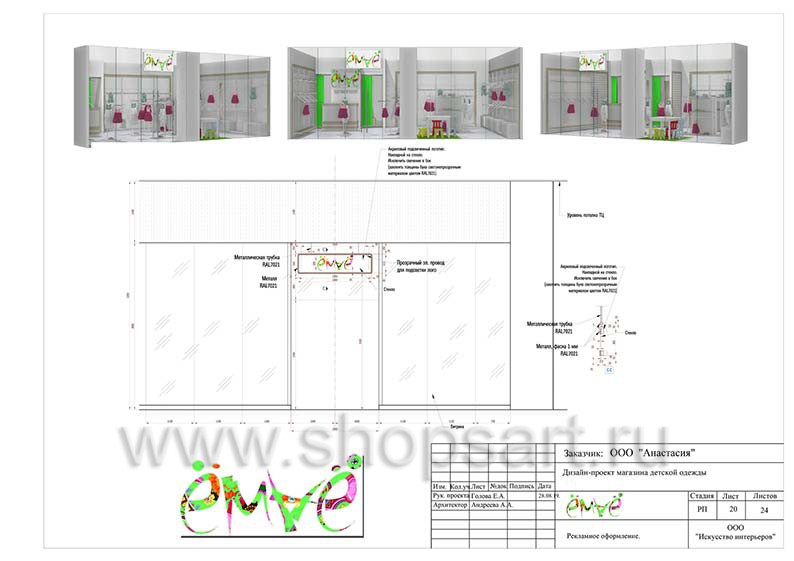 Дизайн помещения магазина детской одежды «ЁМАЁ», разработан на основе выбранного стиля компании, с использованием приемов и решений, выгодно преподносящих покупателю модную детскую одежду.
