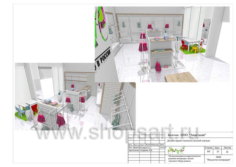 Дизайн-проект магазина, по продаже модной детской одежды, разработан в соответствии с действующими технологическими и санитарными нормами и правилами.