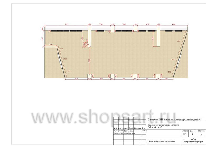 - Подготовительная. Это начальная стадия, предполагающая ознакомление с торговой площадкой. Дизайнеры осматривают коммерческое помещение перед тем, как разработать проект детского магазина. Как правило, на данном этапе выполнятся замеры помещения, учитывается наличие у него архитектурных особенностей.