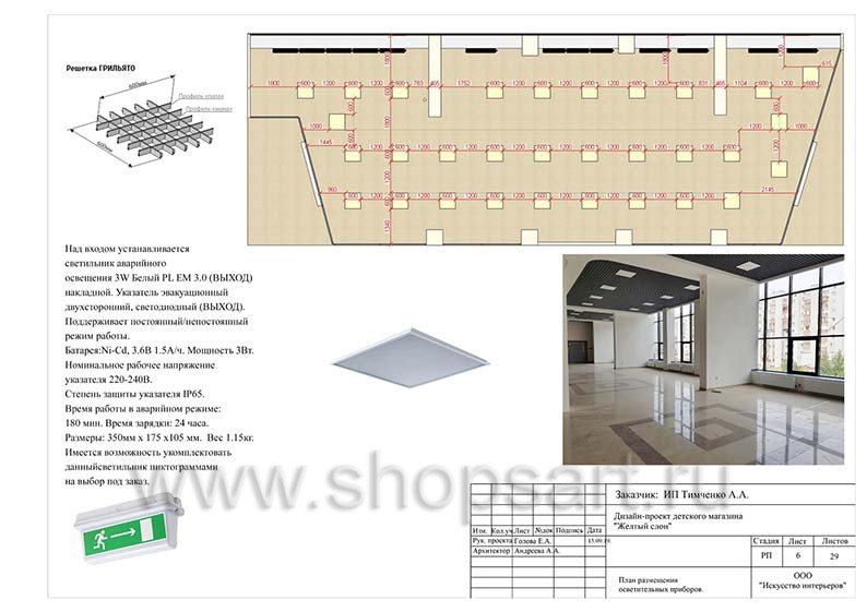6. План размещения осветительных приборов.