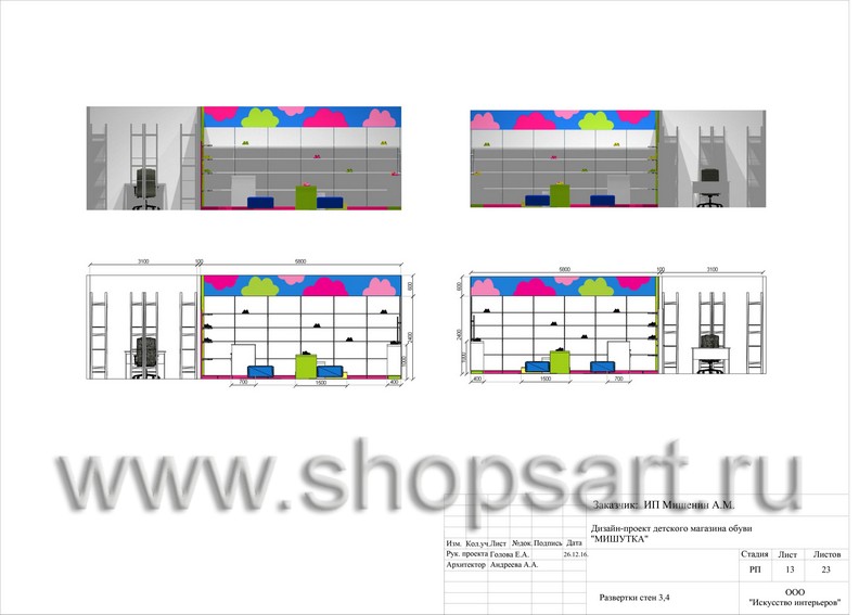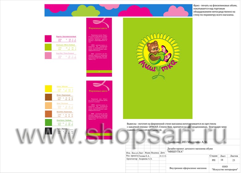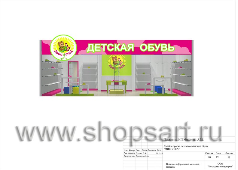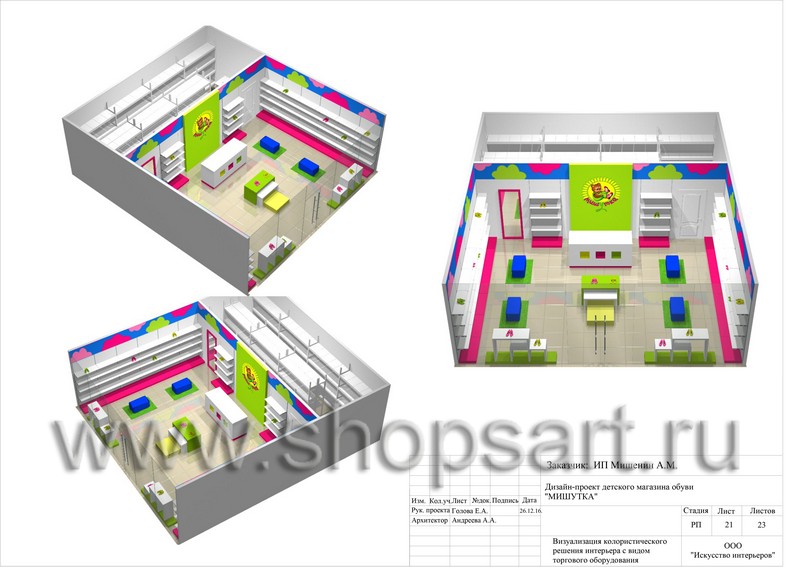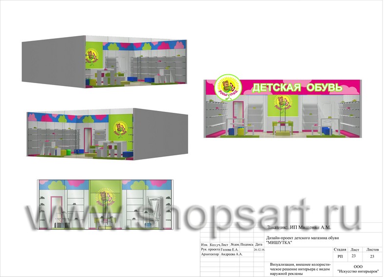 Дизайн интерьера магазинов детской обуви на основе коллекции КАРАМЕЛЬ