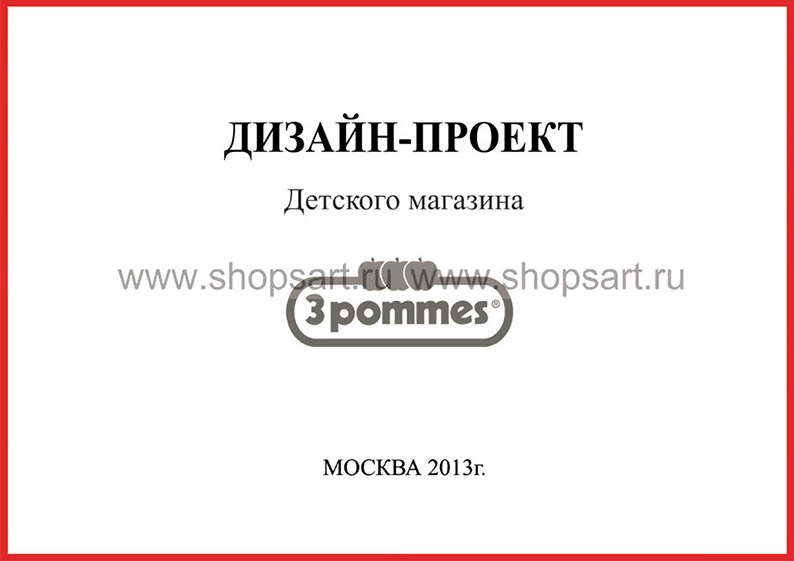 Дизайн помещения магазина детской одежды «3 pommes», расположенного по адресу: город Сургут, ТРЦ “Агора”, помещение 310, разработан на основе выбранного стиля компании, с использованием приемов и решений, выгодно преподносящих покупателю детскую одежду.