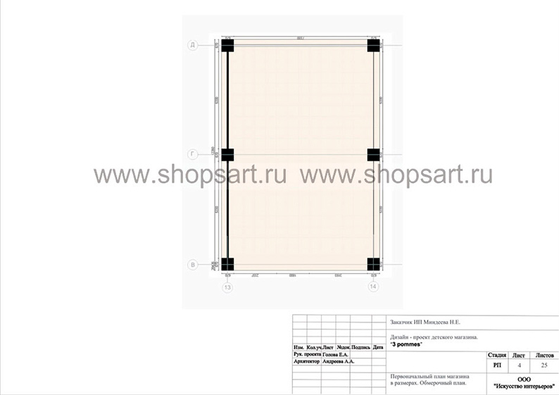 - 4. Первоначальный план магазина в размерах.