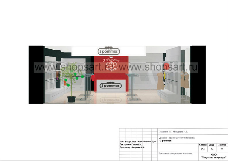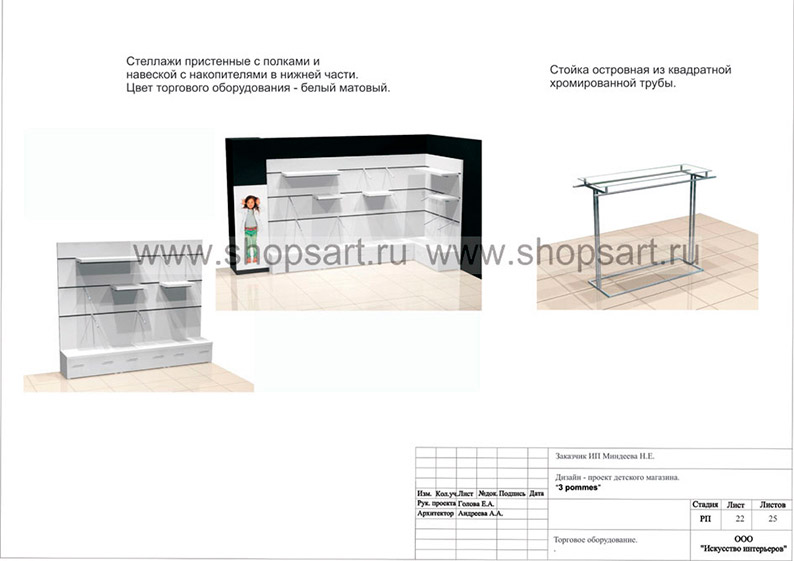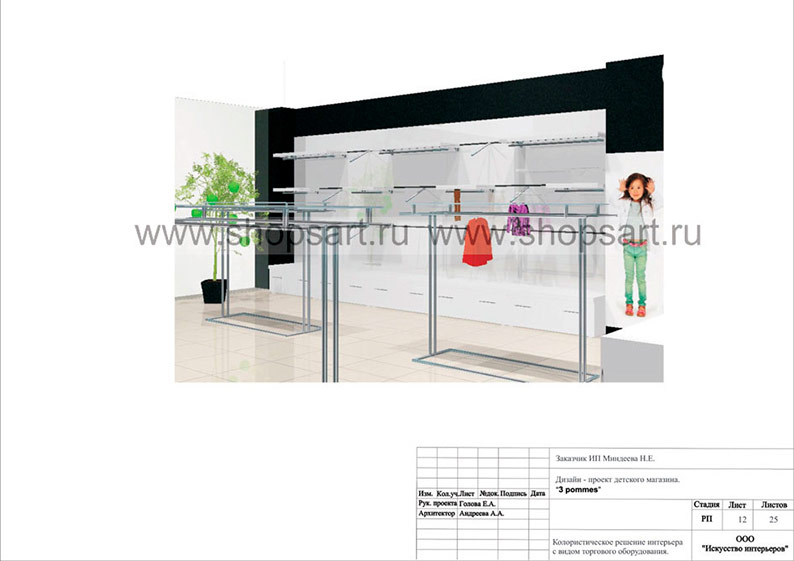 Дизайн-проект магазина по продаже детской одежды, разработан в соответствии с действующими технологическими и санитарными нормами и правилами.