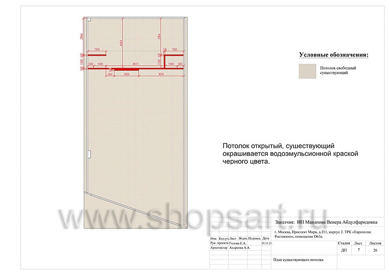 3. Потолок в торговом зале открытый – остаётся существующий.