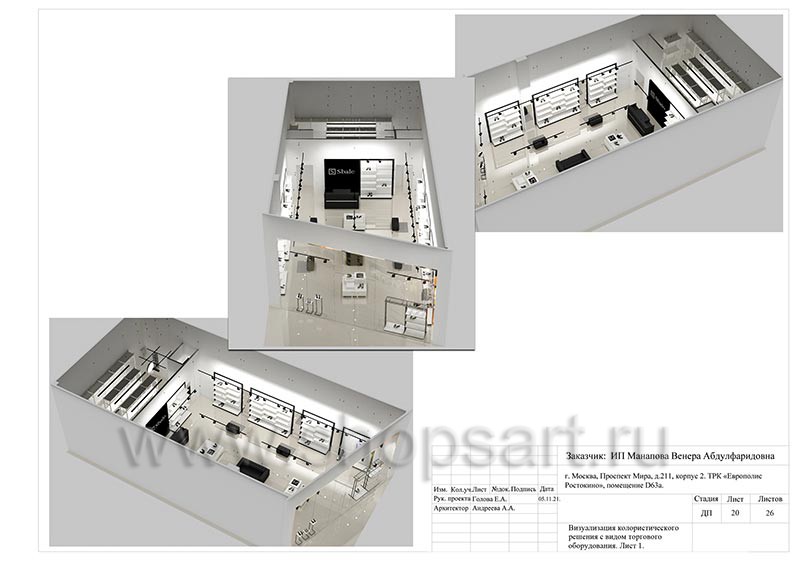 20. 3D Визуализация колористического решения интерьера с видом торгового оборудования