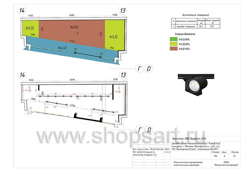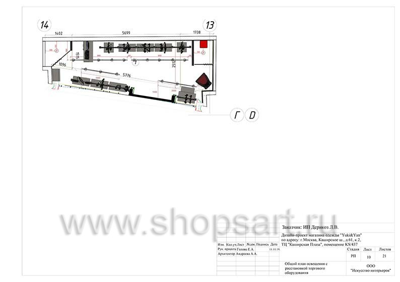 - общий план освещения оборудования с расстановкой оборудования и мебели в магазине;