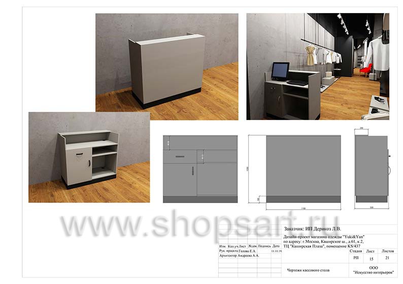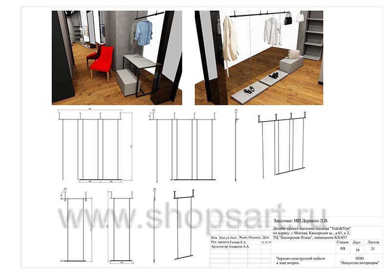 - 16. Чертежи конструкций мебели в зоне витрин.