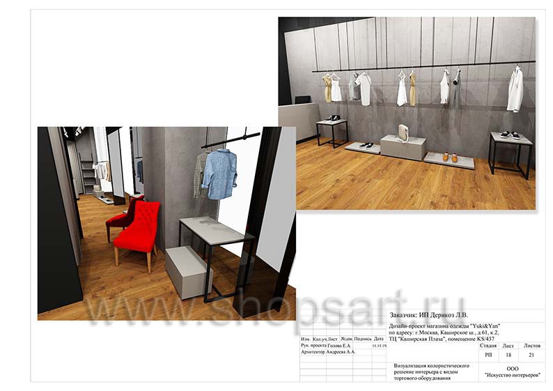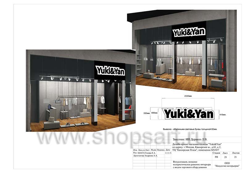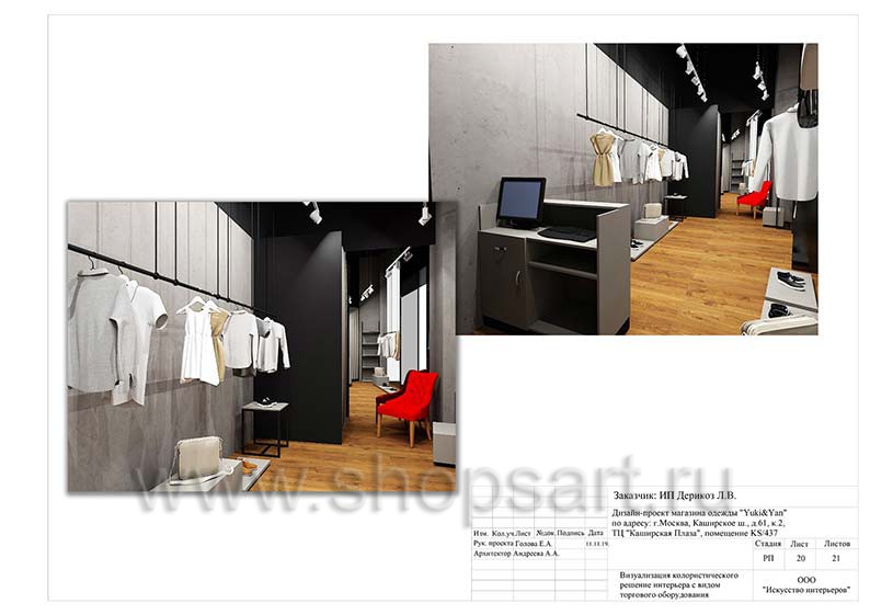 На этой странице Вы можете ознакомиться с дизайн-проектом магазина одежды «Yuki & Yan», находящегося в ТРЦ «Каширская плаза», город Москва, Каширское шоссе, д. 61Г, на основе коллекции торговой мебели «ЛОФТ». Разработала дизайн-проект магазина, дизайн интерьера и дизайн торговой мебели компания «Искусство интерьеров».