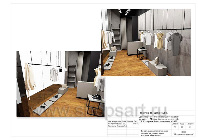 Наглядный пример слаженной работы наших профессионалов — дизайн проект магазина одежды “Yuki & Yan”, Москва на основе торгового оборудования Лофт.