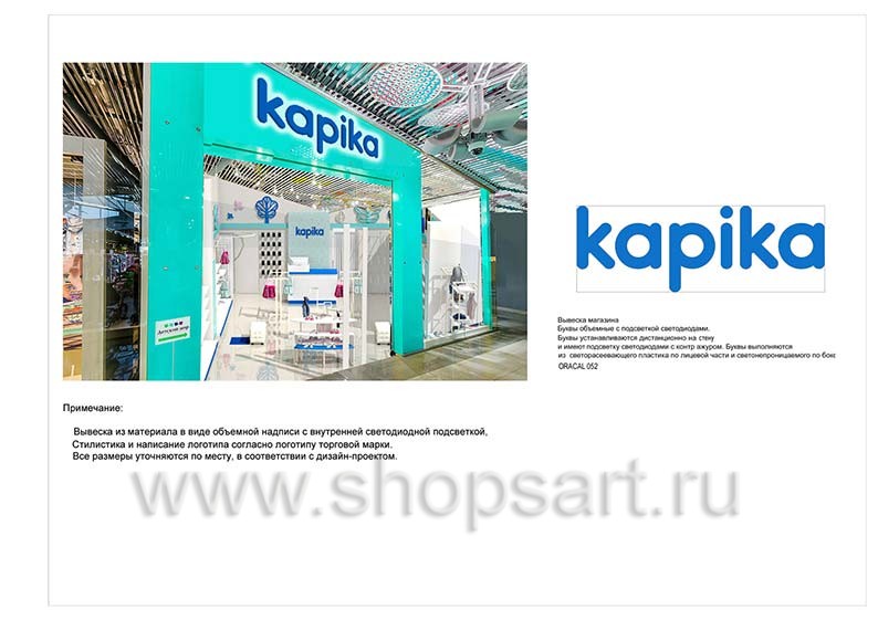 Дизайн помещения детского магазина «Kapika», находящегося в ТЦ “Горизонт”, город Ростов-на-Дону, проспект Михаила Нагибина, дом 32, разработан на основе выбранного стиля компании, с использованием приемов и решений, выгодно преподносящих покупателю модную детскую обувь и одежду.