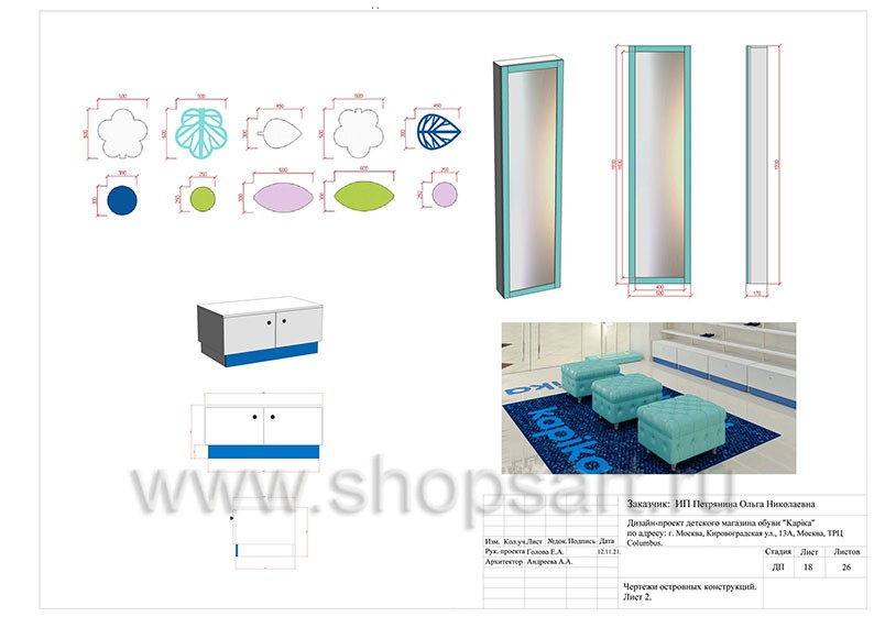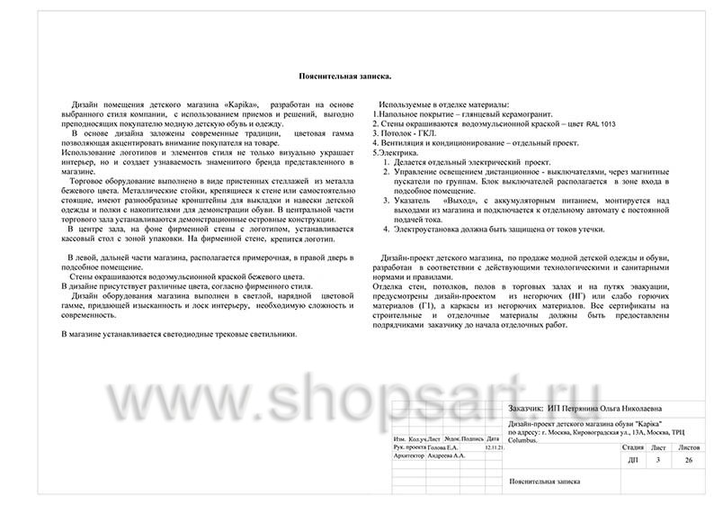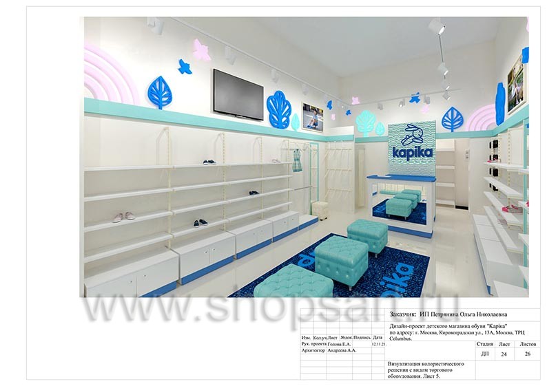 Дизайн-проект детского магазина, по продаже детской обуви и одежды, разработан в соответствии с действующими технологическими и санитарными нормами и правилами.