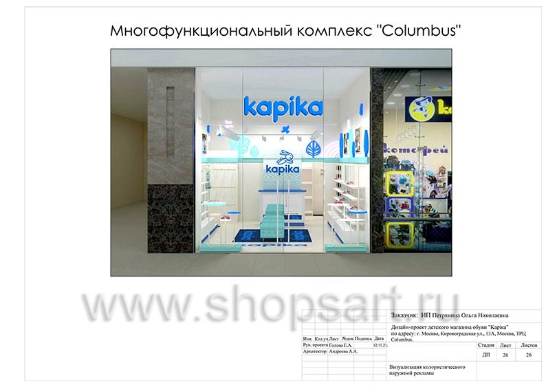 На этой странице Вы можете ознакомиться с дизайн-проектом для сетевого детского магазина «Kapika», находящегося в ТРЦ “Columbus”, город Москва, Кировоградская улица, дом 13А, на основе коллекции торгового оборудования «РАДУГА». Разработала дизайн-проект магазина, дизайн интерьера и дизайн торговой мебели компания «Искусство интерьеров». Узнать больше о наших коллекциях оборудования для детских магазинов Вы можете на странице детской торговой мебели.