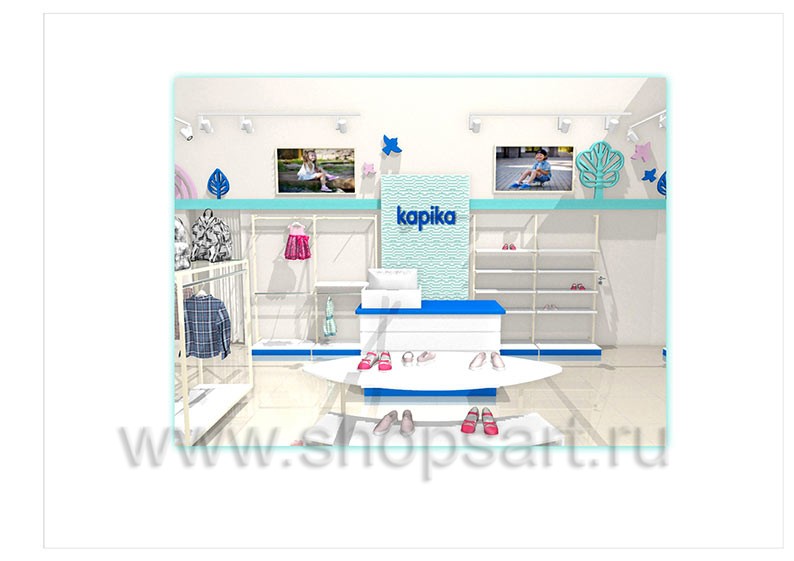 Дизайн интерьера сетевого детского магазина «Kapika», ТРЦ “Columbus”, г. Москва, Кировоградская ул., д. 13А, на основе коллекции торгового оборудования «РАДУГА»