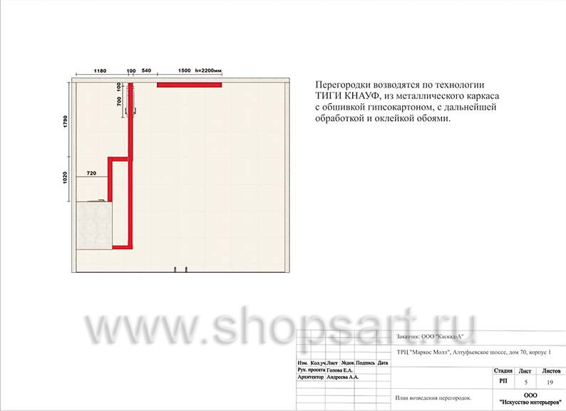 2. Стены изготавливаются из металлического каркаса с обшивкой стен гипсокартонном по технологии KNAUF с дальнейшей обработкой и оклейкой обоями.