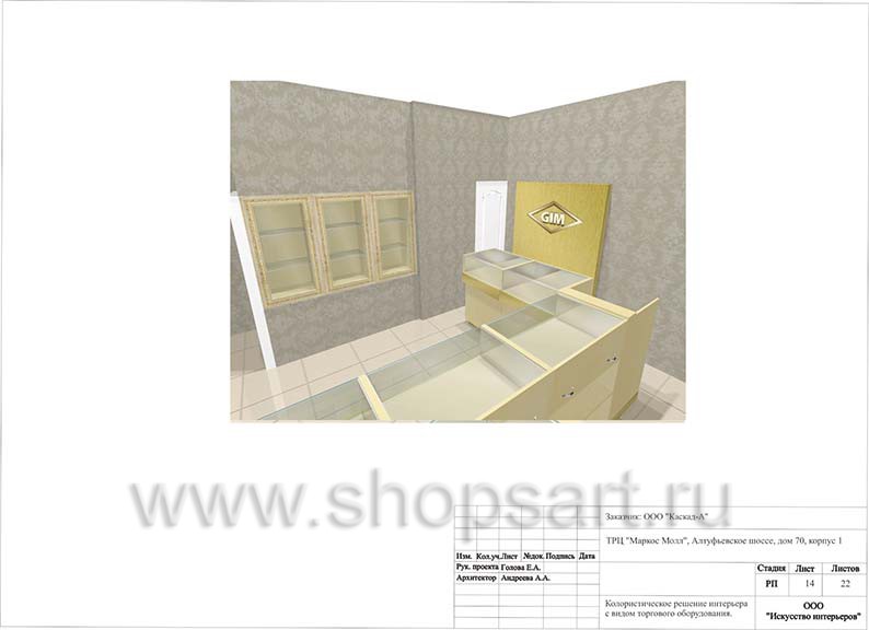 - Дизайн-проект ювелирного магазина “GIM” г. Москва ТДК “Маркос-Молл” на основе коллекции торгового оборудования “СОВРЕМЕННЫЙ СТИЛЬ”. Лист 14.