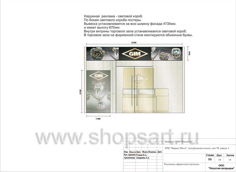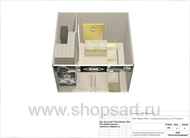 - Дизайн-проект ювелирного магазина “GIM” г. Москва ТДК “Маркос-Молл” на основе коллекции торгового оборудования “СОВРЕМЕННЫЙ СТИЛЬ”. Лист 19.