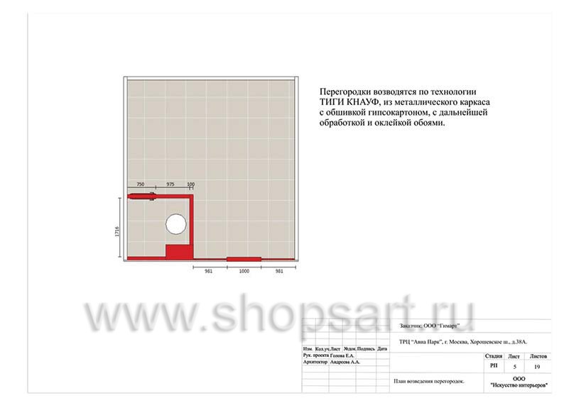 2. Стены изготавливаются из металлического каркаса с обшивкой стен гипсокартонном по технологии KNAUF с дальнейшей обработкой и оклейкой обоями.