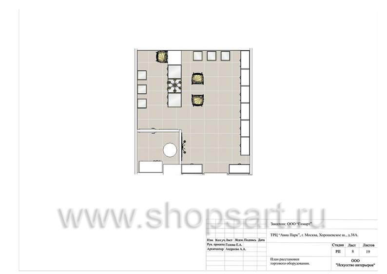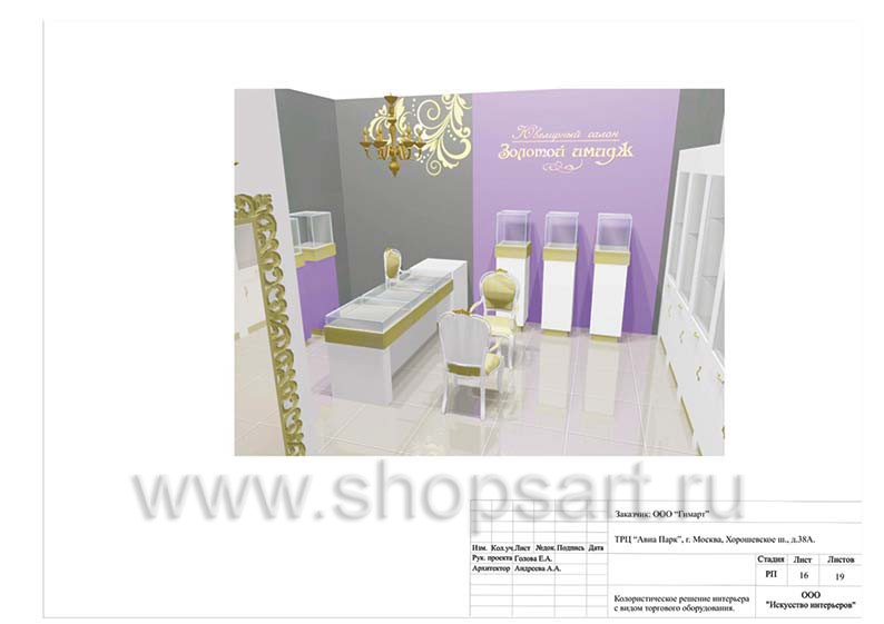 - Дизайн-проект ювелирного магазина “Золотой имидж” г. Москва ТЦ “Авиапарк” на основе коллекции торгового оборудования “СОВРЕМЕННЫЙ СТИЛЬ”. Лист 19.