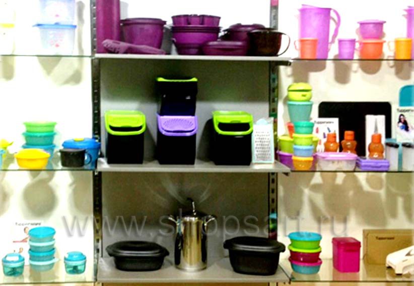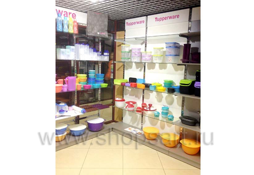 Образец правильного оснащения представлен на данной странице нашего сайта. Это фото торгового оборудования магазина посуды Tupperware. Только посмотрите, насколько функциональны использованные для данного объекта конструкции! Они смотрятся гармонично и никак не загромождают пространство коммерческого помещения. Такое интерьерное решение не только привлечет покупателей. Мебель отличается прочностью и устойчивостью к весовым нагрузкам, что является важным фактором, когда речь идет об оснащении магазина посуды. Данные качества также обеспечат длительную эксплуатацию торговых конструкций. Лаконичный дизайн оборудования выполнен в духе интерьерных тенденций, актуальных в разные времена.