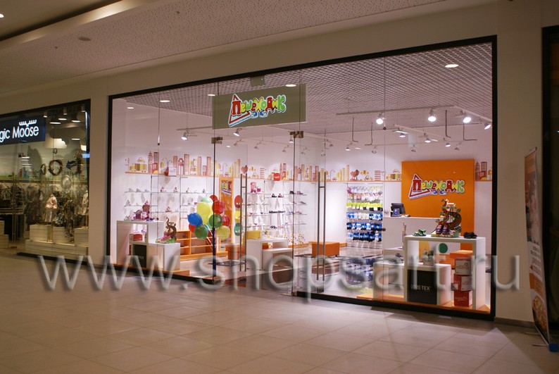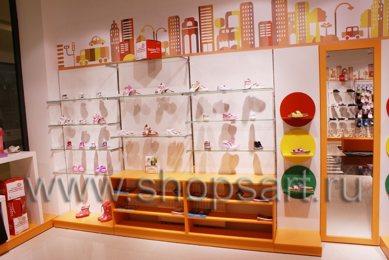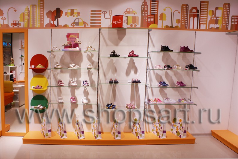 Дизайн интерьера магазина детской обуви «Мишутка», г. Самара, на основе коллекции торгового оборудования «КАРАМЕЛЬ»