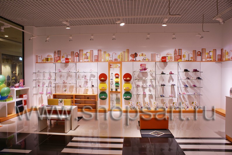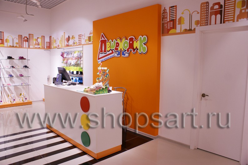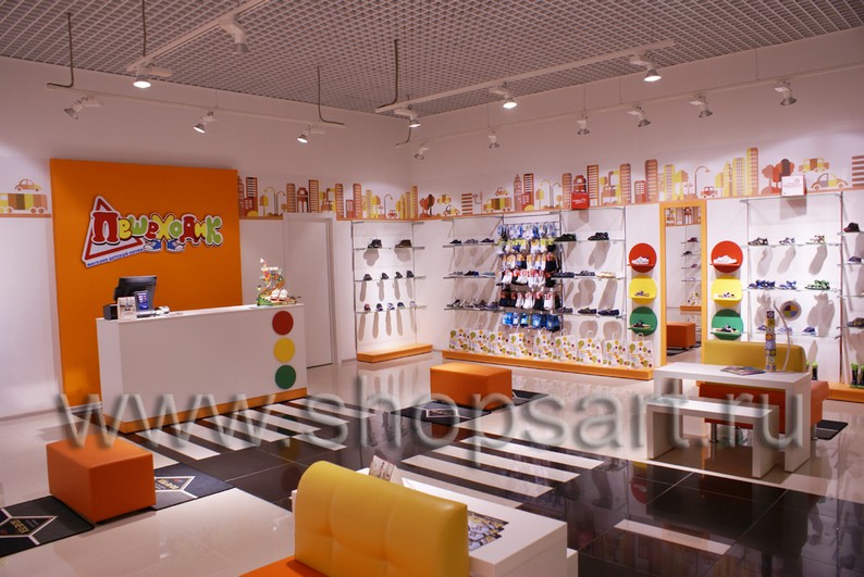 Дизайн интерьера магазинов детской обуви на основе коллекции КАРАМЕЛЬ