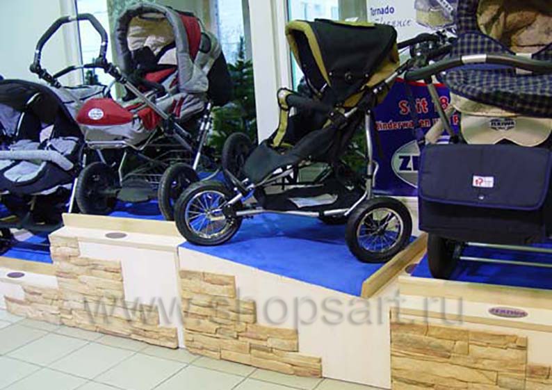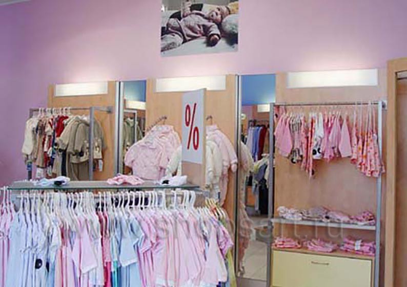 Если коммерческий объект реализует продукцию для новорожденных, то, скорее всего, ассортимент товаров будет включать в себя крупногабаритные изделия (например, детские коляски, ходунки, стульчики для кормления и т.д.). Однако их можно разместить непосредственно на полу, без использования оборудования. Для презентации менее крупных товаров (например, автокресел, пеленальников и т.д.) потребуется специальное торговое оборудование. А вот для демонстрации игрушек и предметов детского гардероба вполне подойдет универсальная торговая мебель (стеллажи, островные конструкции и т.д.).