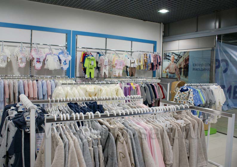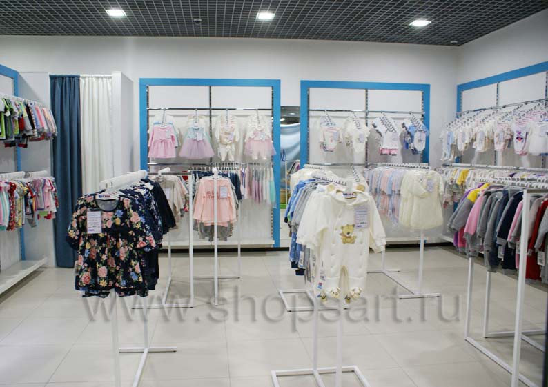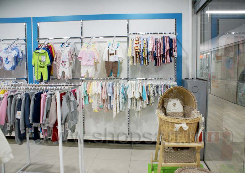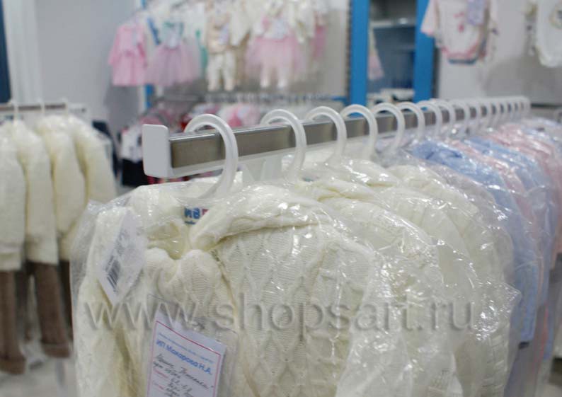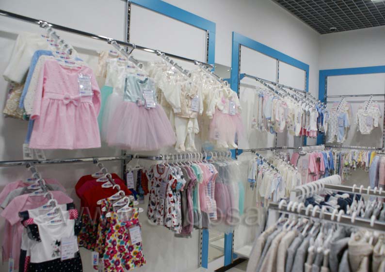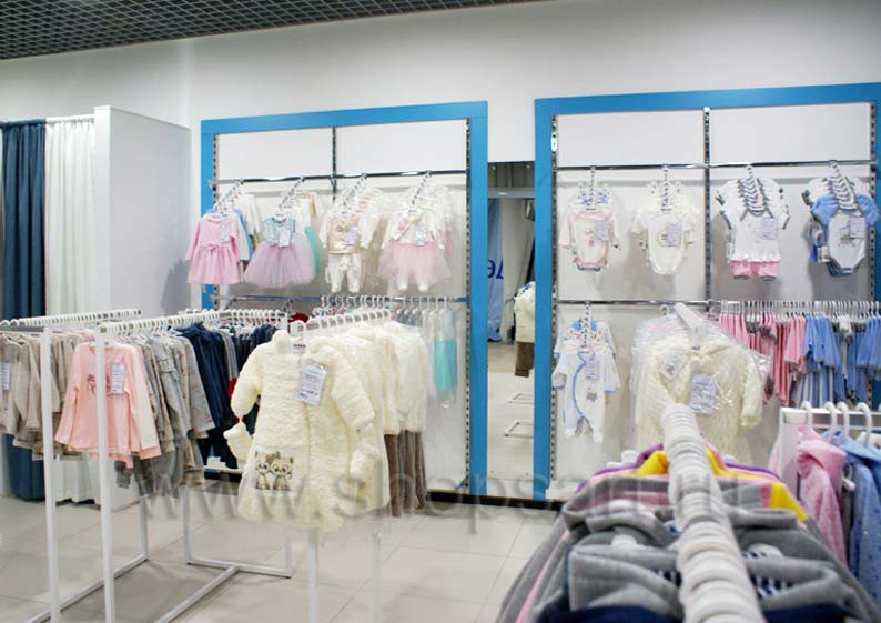 Детские товары маленьких размеров (например, шапочки, чепчики, носочки, белье для новорожденных и т.п.) можно красиво разложить в прилавках или на стеллажах.