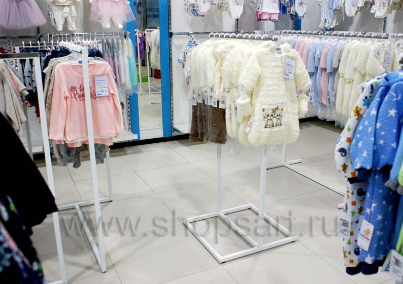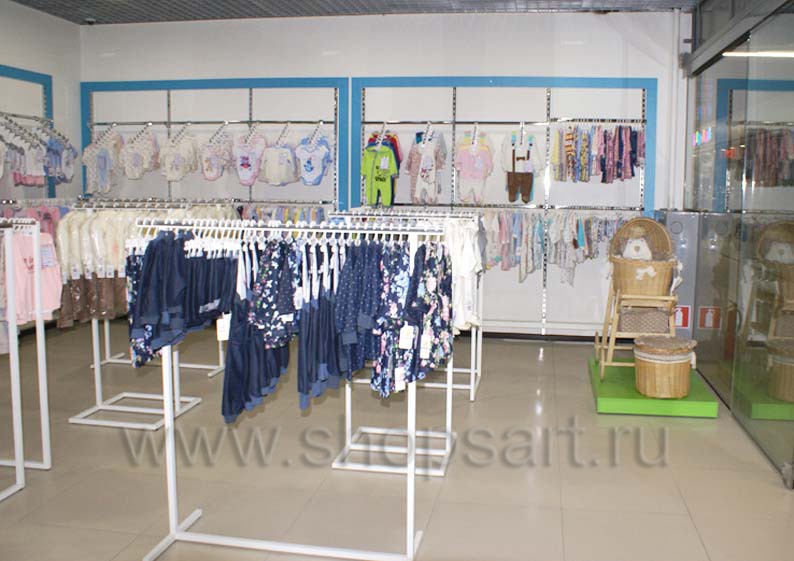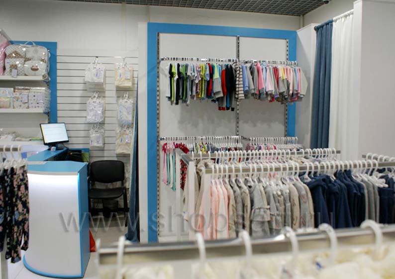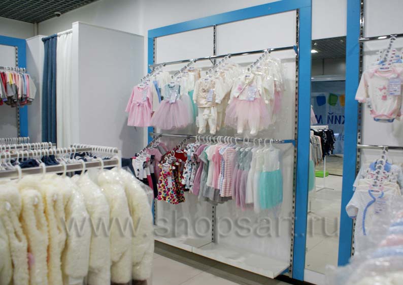 Если в детском магазине продается одежда, то потребуется не только торговая мебель для презентации изделий, но также оборудование для примерки, в частности: