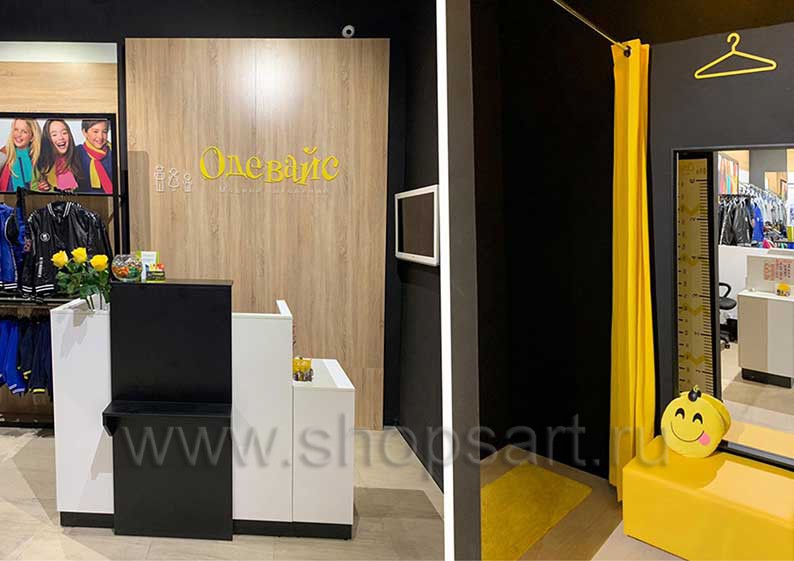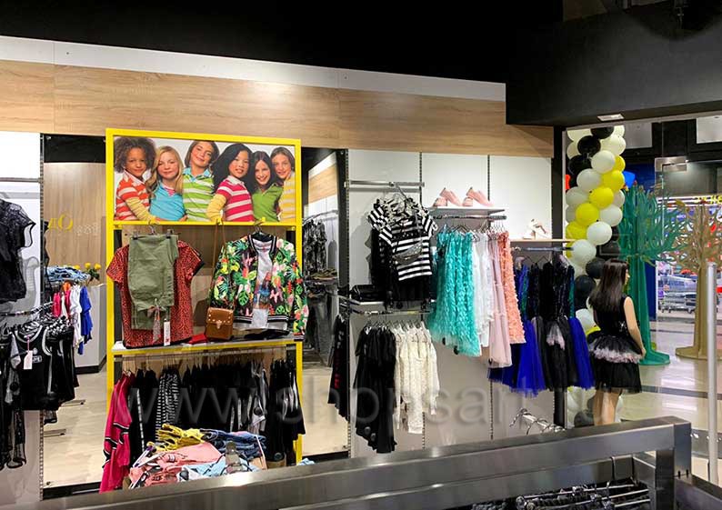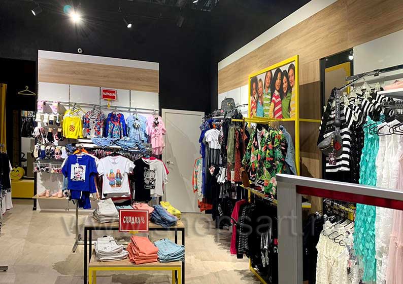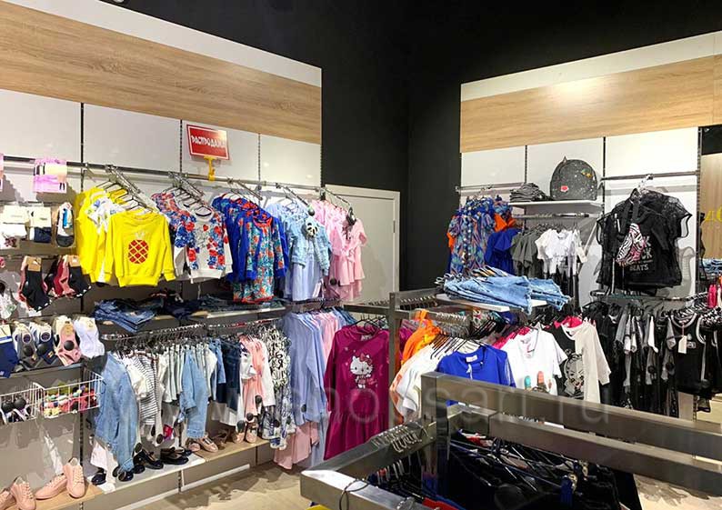 На этой странице Вы можете ознакомиться с фотографиями торгового оборудования в открытом магазине подростковой одежды «ОДЕВАЙС», находящемся в городе Наро-Фоминск, ТРЦ “Воскресенский Пассаж”, Площадь Свободы, дом 2, к. 1, на основе коллекции торговой мебели «РАДУГА». Поставила оборудование для магазина: торговые стеллажи, пристенные стеллажи, торговые острова, торговые стойки и другое оборудование для обуви компания «Искусство интерьеров». Узнать больше о наших коллекциях мебели для детских магазинов Вы можете на странице торгового оборудования для детских магазинов.