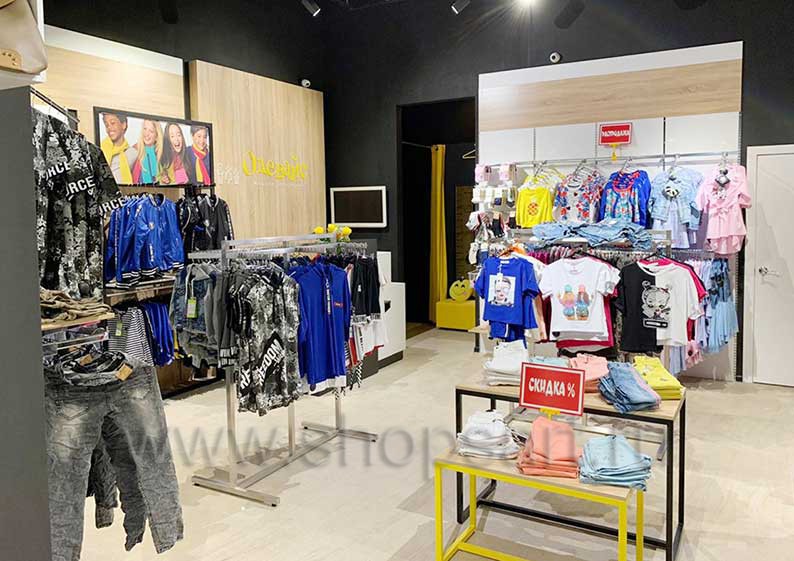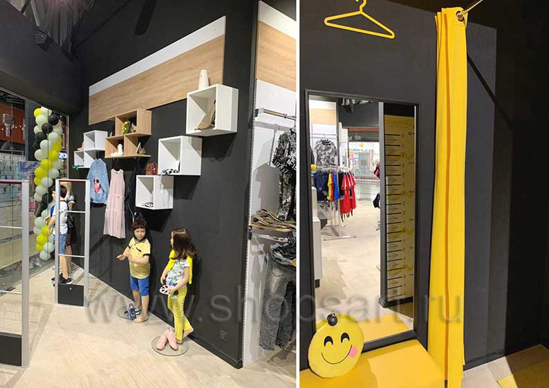 Если в магазине продается детская одежда, неотъемлемыми атрибутами оснащения являются зеркала, примерочные кабины и удобные пуфики (или табуреты).