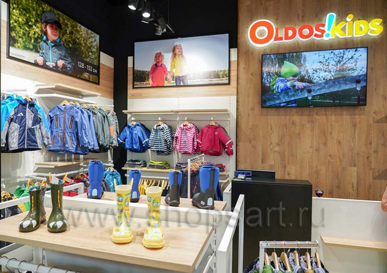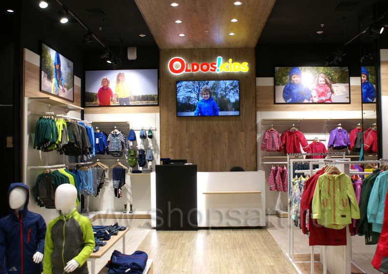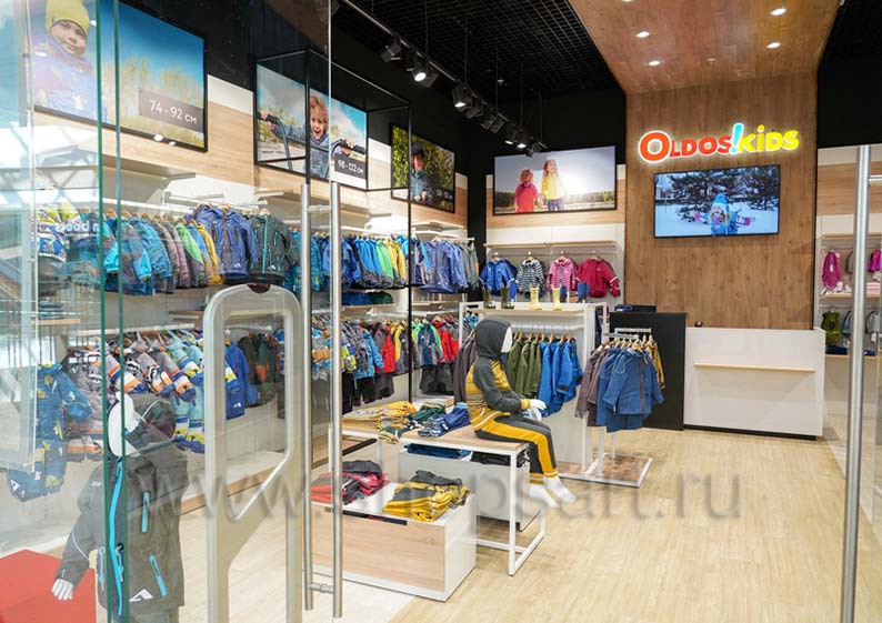Дизайн интерьера сетевых детских магазинов “OLDOS KIDS”, ТРЦ “Каширская Плаза”, ТРК “Красный Кит”, на основе коллекции торгового оборудования «РАДУГА»