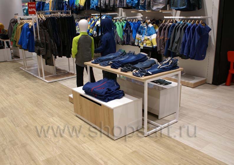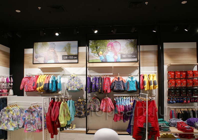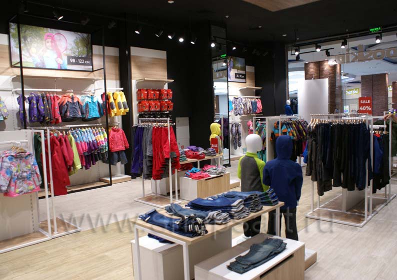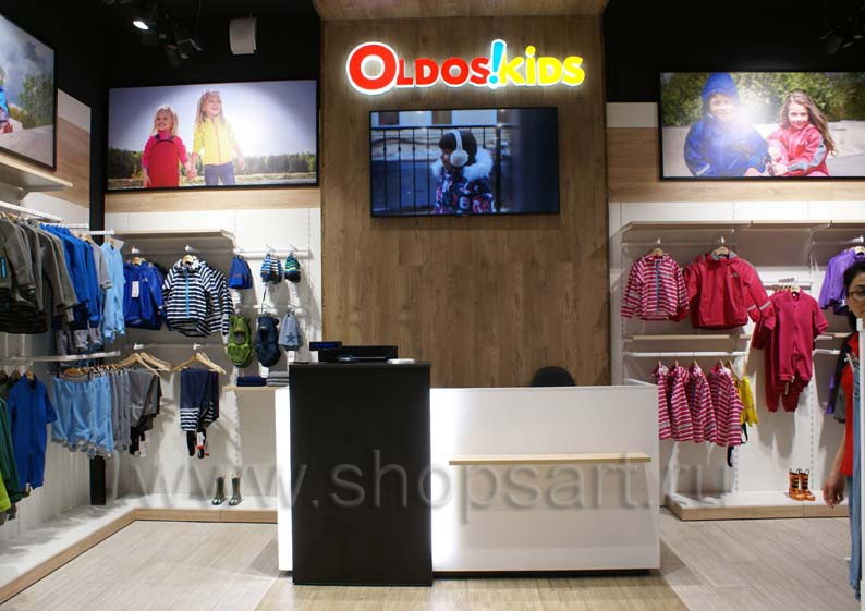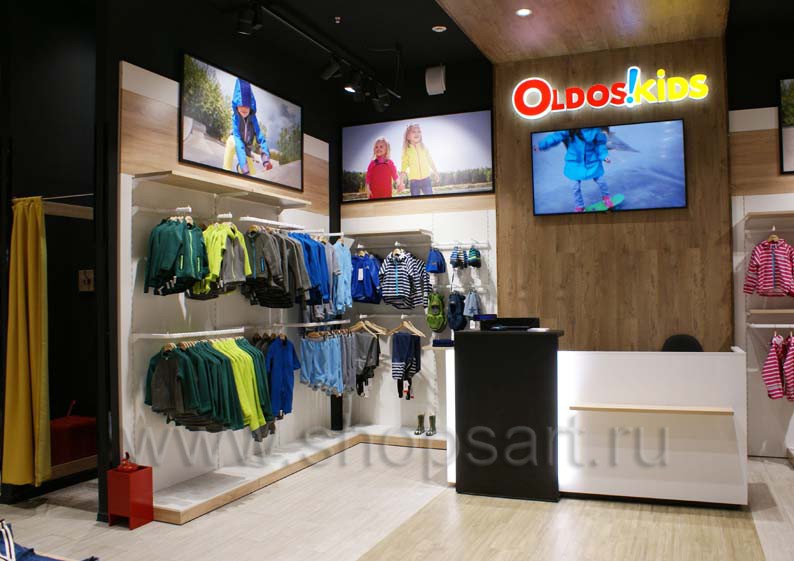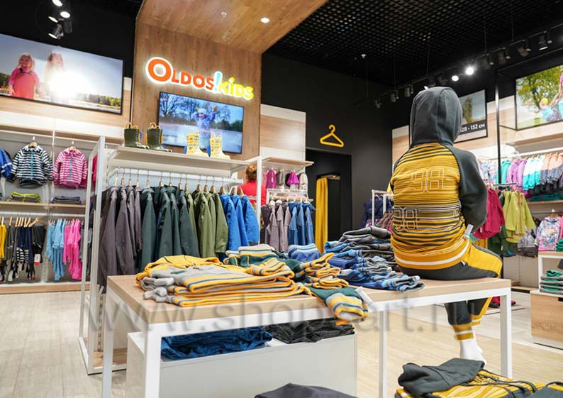 На этой странице Вы можете ознакомиться с фотографиями торгового оборудования в открытом сетевом детском магазине одежды «OLDOS KIDS», находящемся в ТРЦ “Каширская Плаза”, 3-й этаж, город Москва, на основе коллекции торговой мебели «РАДУГА». Поставила оборудование для магазина: торговые стеллажи, пристенные стеллажи, торговые острова, торговые стойки и другое оборудование для детского магазина компания «Искусство интерьеров». Узнать больше о наших коллекциях мебели для детских магазинов Вы можете на странице торгового оборудования для детских магазинов.