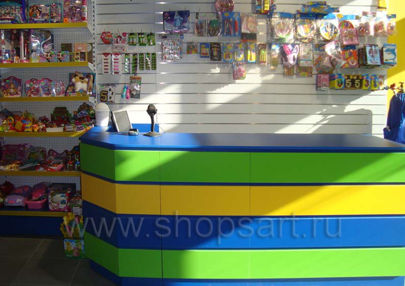 На этой странице Вы можете ознакомиться с фотографиями торгового оборудования в открытом детском магазине находящемся в городе Москве, жилой район «Green park», ул. Березовая аллея, на основе коллекции «ЦВЕТНЫЕ МЕТАЛЛИЧЕСКИЕ СТЕЛЛАЖИ». Магазин торгует детскими товарами и игрушками, школьной канцелярией, надувными шариками. Разработала дизайн оборудования и поставила торговую мебель: торговые стеллажи, пристенные стеллажи, стеллажи усиленные, овальные стеллажи и другое оборудование для магазина компания «Искусство интерьеров». Узнать больше о наших коллекциях мебели для магазинов Вы можете на странице торгового оборудования для детских магазинов.
