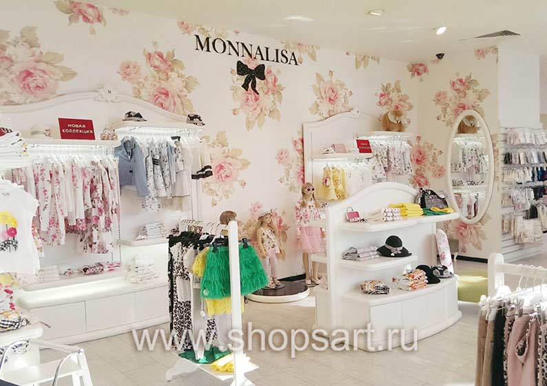 Серия торговой мебели «Монализа» имеет классический дизайн, и поэтому актуальна независимо от веяний моды. Верхние части торговых стеллажей имеют форму изящных арок. Это дизайнерское решение позволяет конструкциям способствовать созданию уютной и привлекательной атмосферы в торговом зале. Оригинальность коллекции придают и радиусные линии. Благодаря им оснащение коммерческого помещения будет выглядеть нежнее и приятнее. Наглядным примером красоты, создаваемой данной мебелью, являются фотографии торгового оборудования детского магазина Винни, ТЦ Dream House, Барвиха, коллекция Монализа.