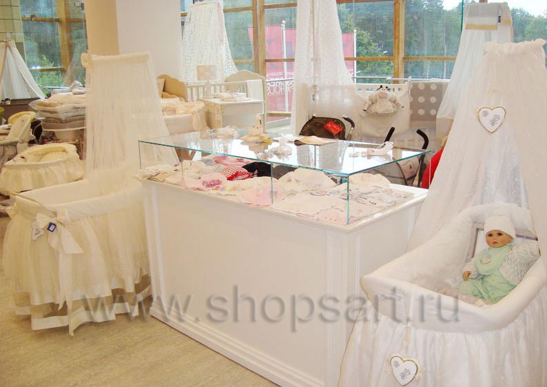 Дизайн торгового оборудования сетевого детского магазина “Винни”, Москва, Рублёвское ш., д. 20, корп. 1, на основе коллекции «БЕЛАЯ КЛАССИКА»