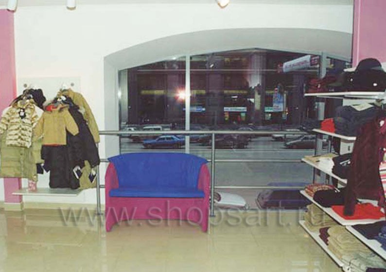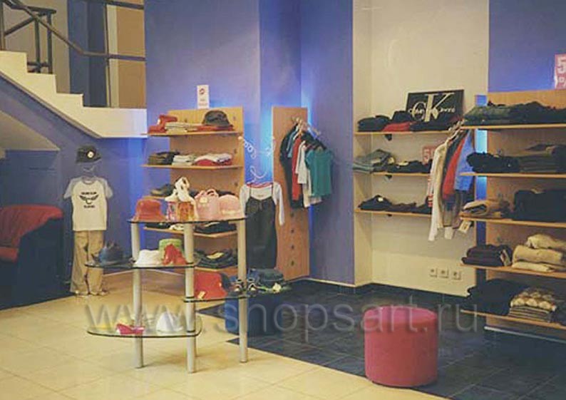 Мебель следует выбрать такую, чтобы она была удобной и для маленьких посетителей, и для их родителей. Для этого следует уметь правильно использовать торговое оборудование. На нижних полках разместите товары, которые заинтересуют дошкольников. Так мамам не придется наклоняться для того, чтобы взять в руки понравившуюся ребенку вещь. Лучший обзор моделей обеспечивает их развешивание на кронштейнах. Так они заметны посетителям лучше, чем в сложенном виде на полках.
