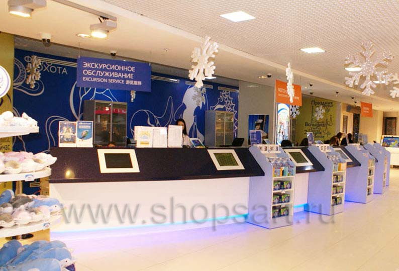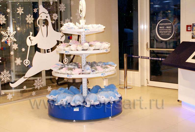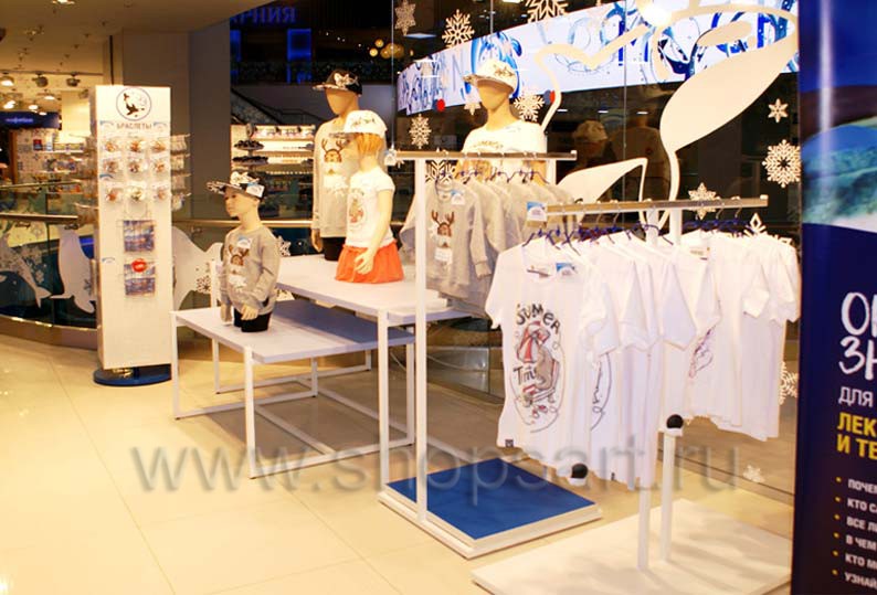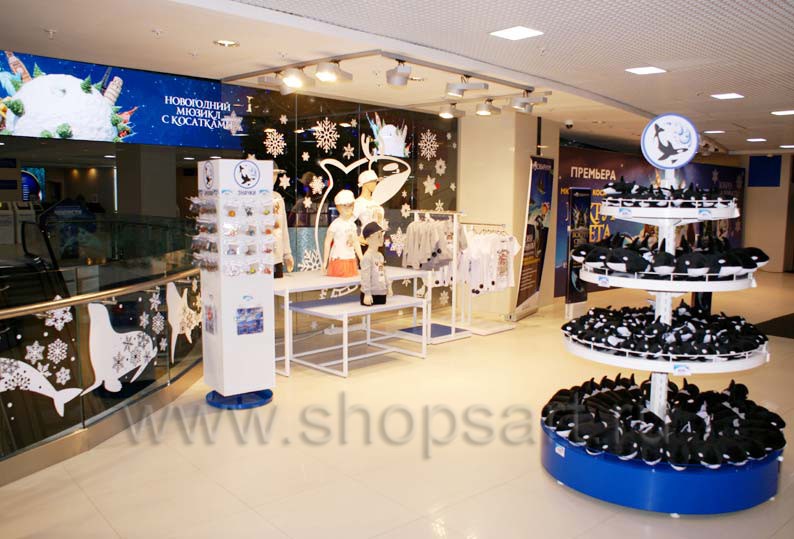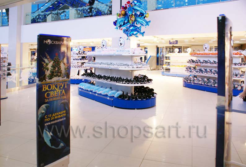 На этой странице Вы можете ознакомиться с фотографиями торгового оборудования детского сувенирного магазина, находящегося в городе Москве, ВДНХ, проспект Мира, 119 стр.23, в научно-развлекательном комплексе океанариума и дельфинария Москвариум, в зоне входа-выхода, на основе коллекции торгового оборудования «ЦВЕТНЫЕ МЕТАЛЛИЧЕСКИЕ СТЕЛЛАЖИ». Разработала и поставила торговую мебель: торговые стеллажи, овальные стеллажи, пристенные стеллажи и другую торговую мебель компания «Искусство интерьеров». Узнать больше о наших коллекциях мебели для магазинов Вы можете на странице торгового оборудования для детских магазинов.
