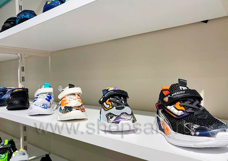 Оснащение, используемое для размещения обувных изделий для детей, отличается по своим габаритам от аналогичных конструкций, применяемых в заведениях, реализующих товары для взрослых. Они меньше и ниже. Однако родители, посещающие магазины вместе со своими детьми, не испытывают каких-либо неудобств или дискомфорта при изучении ассортимента изделий. Для юных покупателей такое оборудование и вовсе в радость, ведь они могут легко дотянуться то той пары обуви, которая им приглянулась. Стоит отметить, что, несмотря на компактные размеры, эти конструкции очень вместительны.