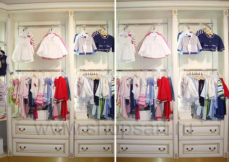 В наши дни оснащение заведений, реализующих вещи для малышей и подростков, предполагает применение разных категорий конструкций. Рассмотрим, как правильно использовать тот или иной вид торговой мебели для презентации детской одежды.