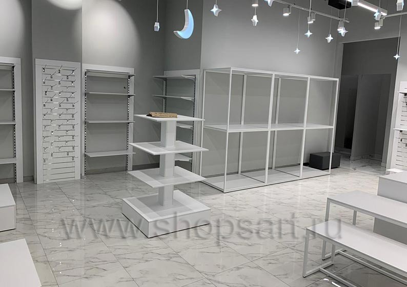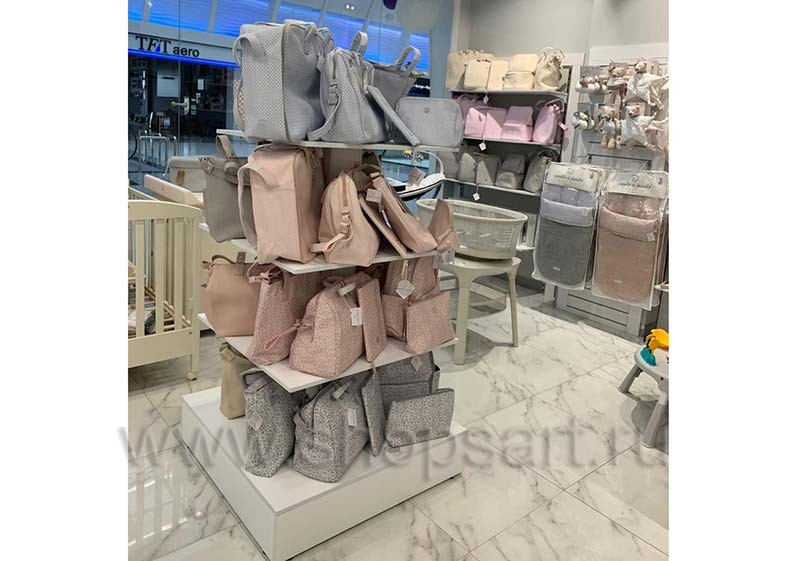 Если в магазине наряду с детской одеждой продается и обувь для мальчиков и девочек, то понадобится применение соответствующего торгового оборудования (демонстрационных столов, стеллажей, полок и островных конструкций).
